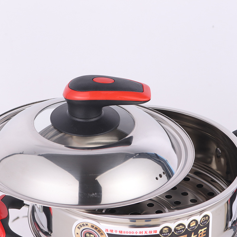 中國紅款電熱鍋采用紅色底座,黑紅配把手、鍋紐,采用0.7MM加厚加深鍋體,0.4MM加厚加高蒸籠,配特厚蘑菇鍋蓋,中國紅高檔電熱鍋配置高,外觀美觀時尚,結實耐用,是一款時尚的高檔電熱鍋。